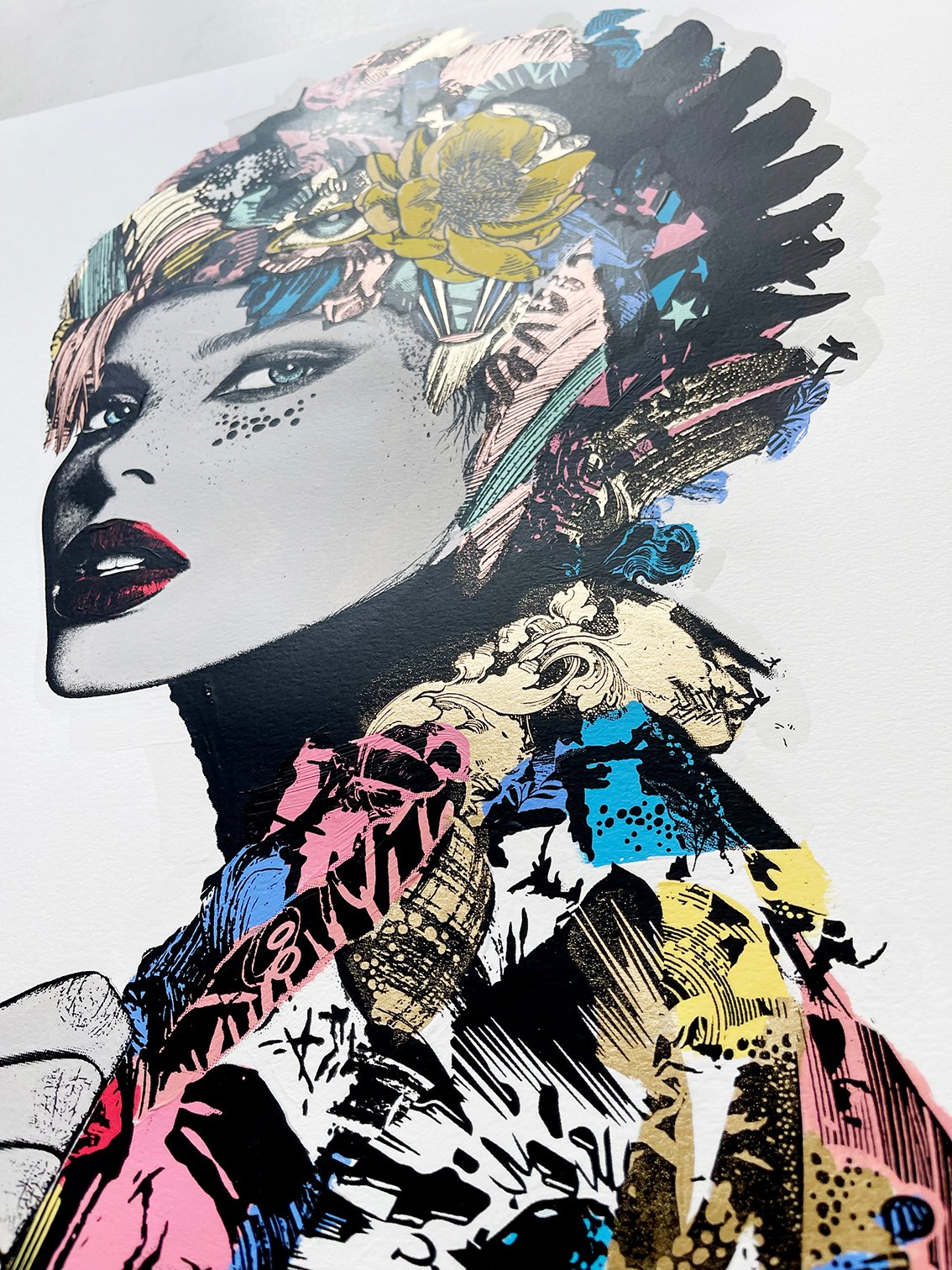 Hand painted with acrylics, metallic and fluorescent paint on 290gsm Somerset paper