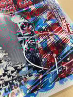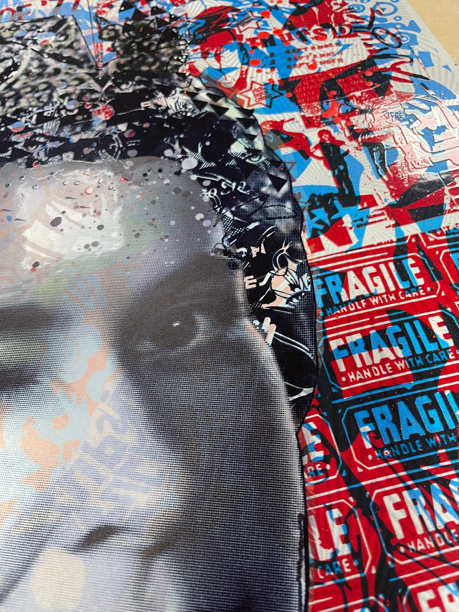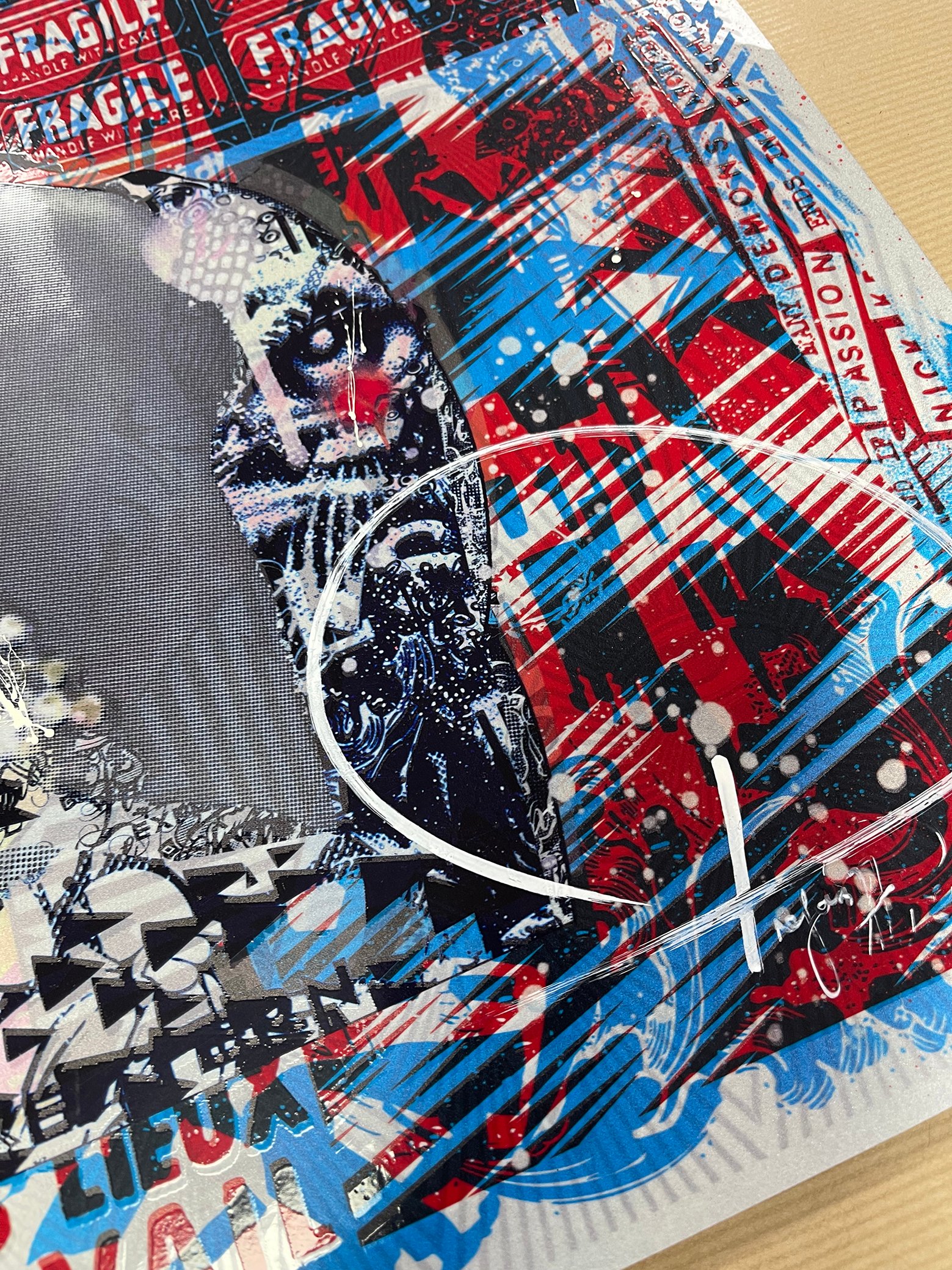 Screenprint on 400gsm Oralite, police grade, reflective material. Overprinted in UV gloss ink